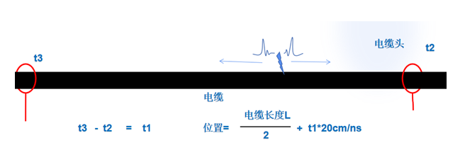 本系统基于分布式行波定位技术原理,能够在电缆故障发生后,采集脉冲电流信号和电流行波信号通过对放电数据进行图谱分析,评估诊断局放及故障情况,快速精确定位故障点。通过监测故障点产生的行波传输到电缆两端采集单元的时间差,即A、B采集单元主峰波头对应的GPS时间差,与行波在电缆中传播的速度关系,分析计算故障点距离采集单元的位置。