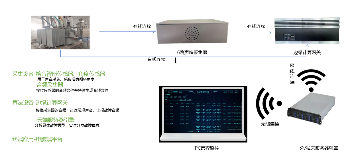声纹在线监测系统能够对设备状态综合评价和智能推理、故障诊断技术,及时掌握设备的运行状态。为设备维修决策提供重要依据,确定发电变压器组及其各部件的最佳维修时间,防止恶性事故的发生,实现故障预警。